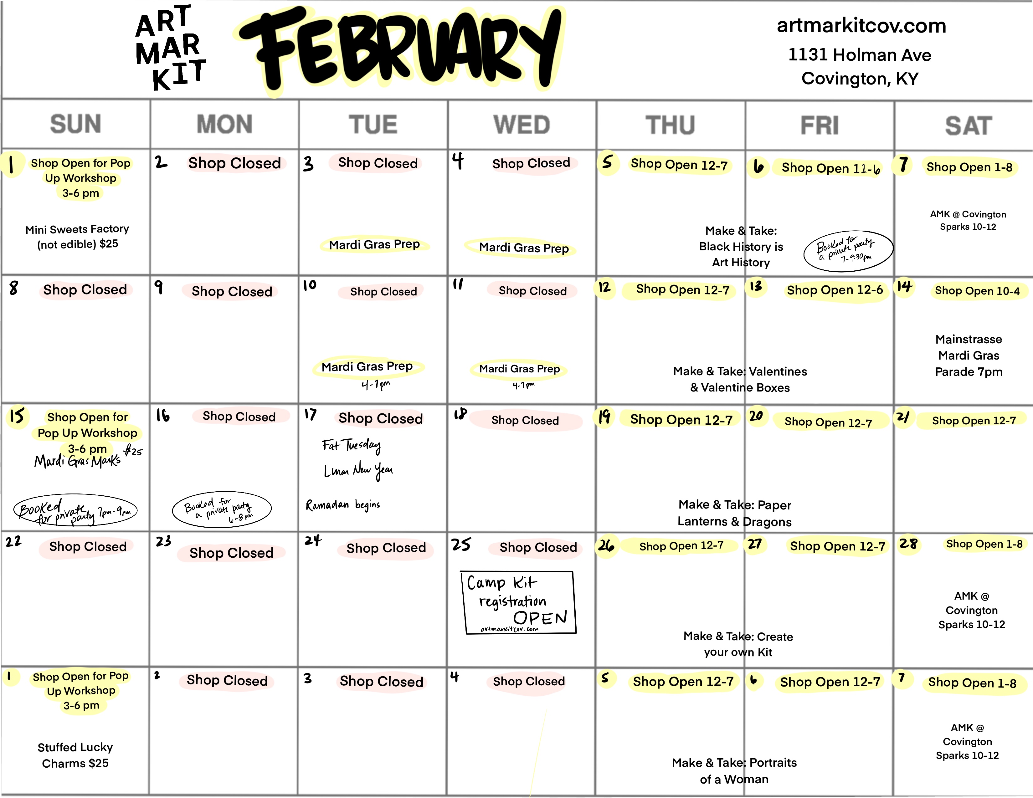 Join the Westside Krewe, stop in the shop any of these days from 4-7 to help us on our journey in making the elements to our walking float for the 2026 Mainstrasse Mardi Gras Parade!
