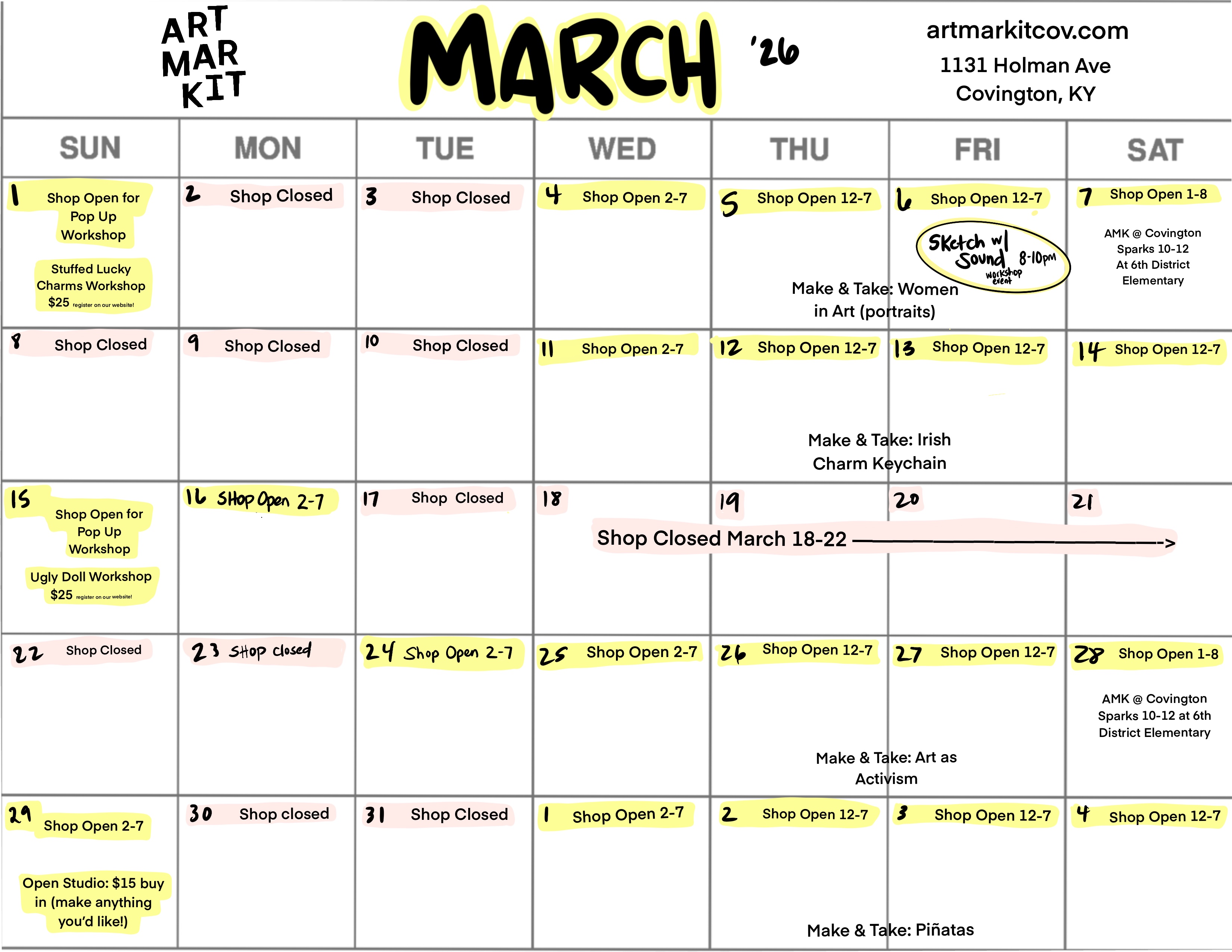Artmarkit will be with SPARKS in the morning at 6th district elementary school, from 10-12